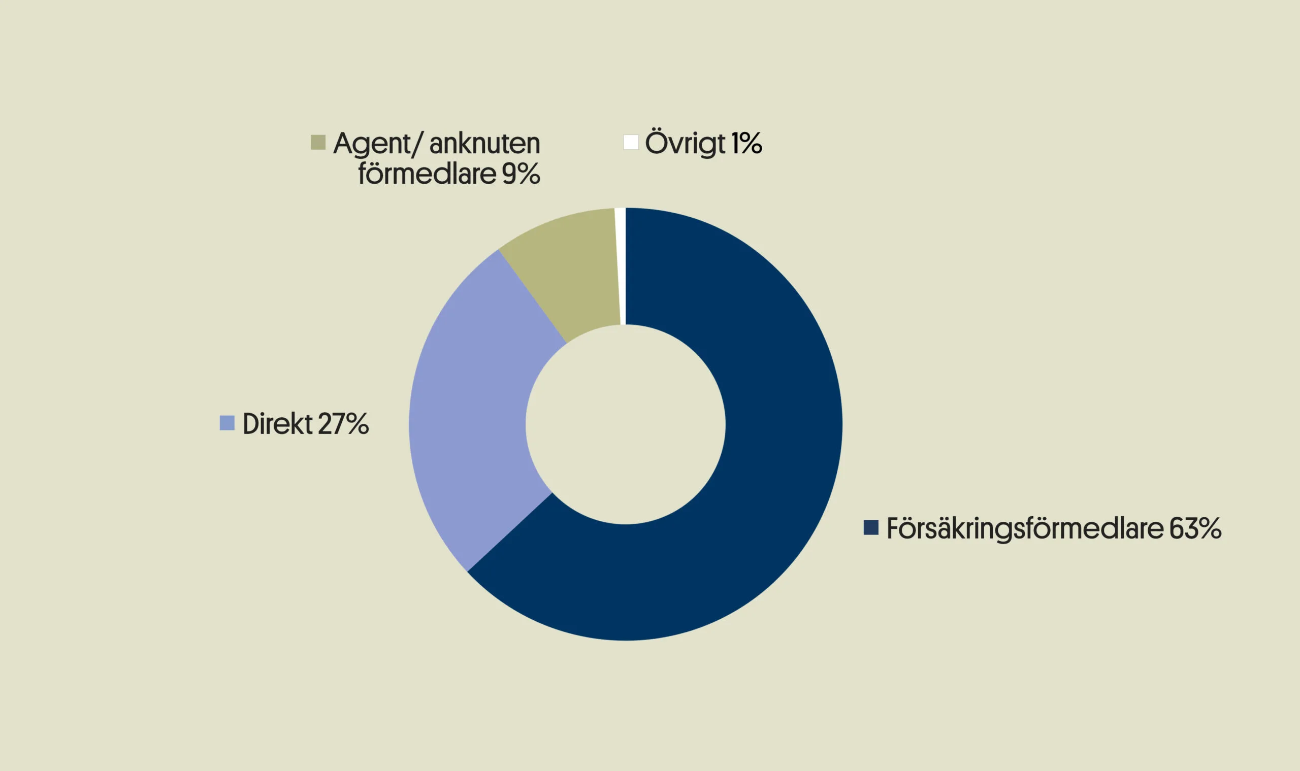 Hypotetisk fördelning av totala sakförsäkringspremier för företag fördelade på distributionskanaler år 2023